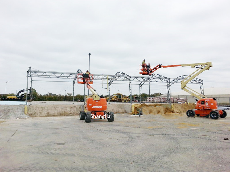 在组织验收构件的同时,还应根据场地条件和施工方案搭设膜体展开平台,安装安全网。